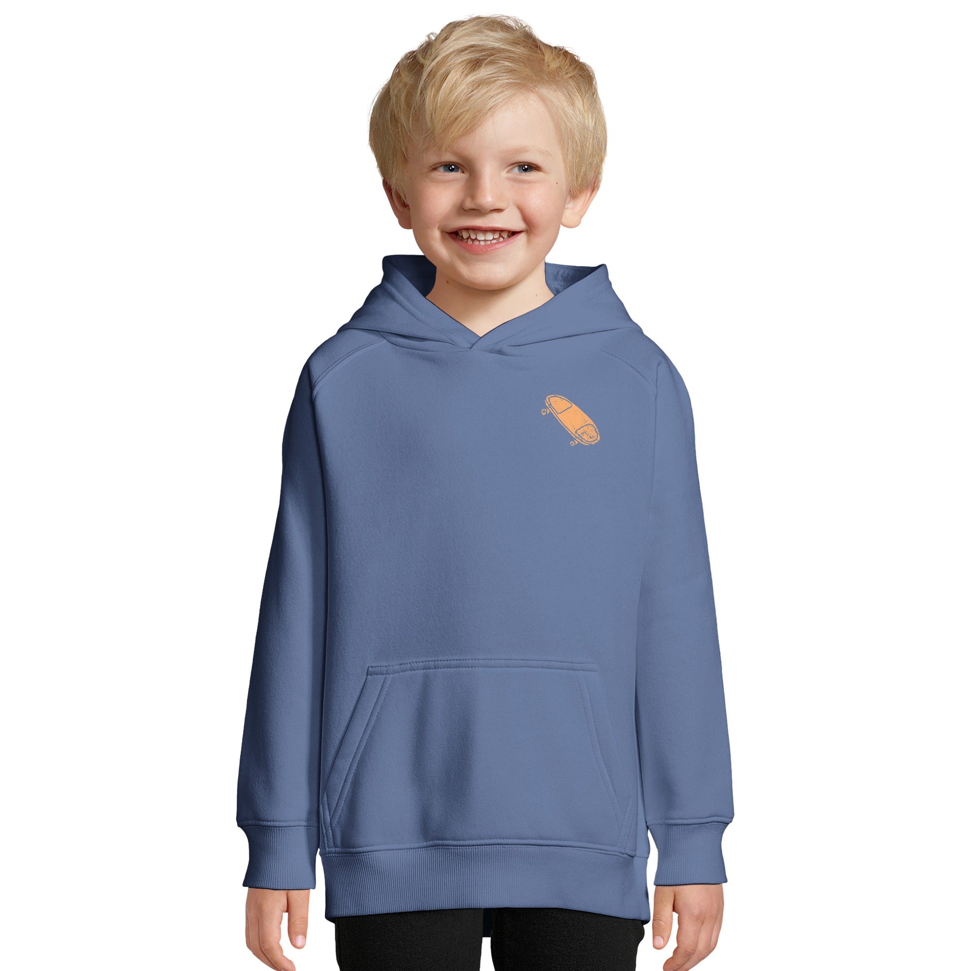 Hoodie diseño skate old school con un skate en la parte delantera en color de contraste en función del color elegido en la prenda.